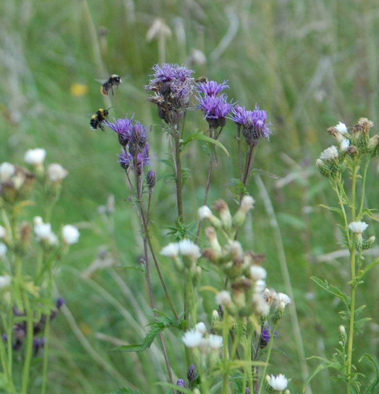 Lys jordhumle og markhumle på jærtistel. Foto: Synnøve Thorvaldsen