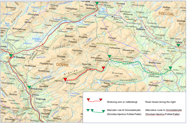 På et hastemøte 17. juli der Dovre kommune, Dovre Fjellstyre, Gimsdalsvegen, Villreinutvalget Rondane nord, SNO, Mattilsynet, Norsk villreinsenter og Statsforvalteren var til stede, var det stor enighet om å forsøke dette tiltaket. Dyra har det ikke bra slik situasjonen er nå, og vi må gjøre hva vi kan for at reinen skal komme seg til nye beiter og unngå sykdom. Vi trenger derfor hjelp fra alle som har planer om å oppholde seg i dette område fra 19. juli til 26. juli om å respektere kjøre- og campingforbudet i dette området.