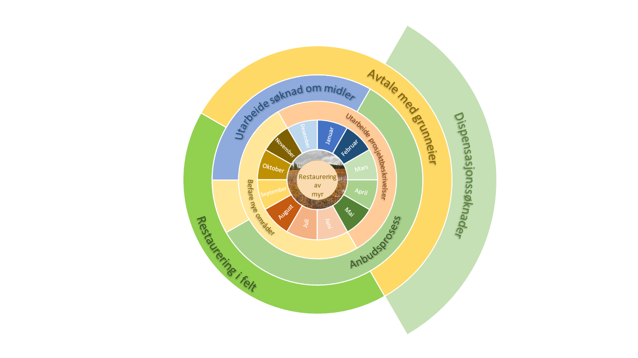 Restaurering av myr handler i all hovedsak om å gjenskape den naturlige vannbalansen. Myrene i Innlandet er som regel grøftet med tanke på skogproduksjon. I noen tilfeller er de grøftet med tanke på jordbruk. Restaureringsområdene som velges ut er områder som ikke har ført til produktiv skog, og som ikke er i drift som jordbruksarealer.