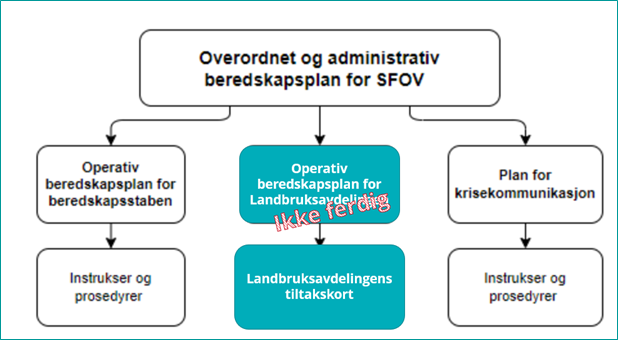 Satsingen på beredskapsarbeid omfatter både intern satsing og satsing ut mot kommunal landbruksforvaltning. Vi har en egen samfunnssikkerhet- og beredskapsstab (beredskapsstaben) som har ansvaret for «Overordnet og administrativ beredskapsplan», og vårt overordna beredskapsarbeid. Landbruksavdelingen samarbeider tett med beredskapsstaben.