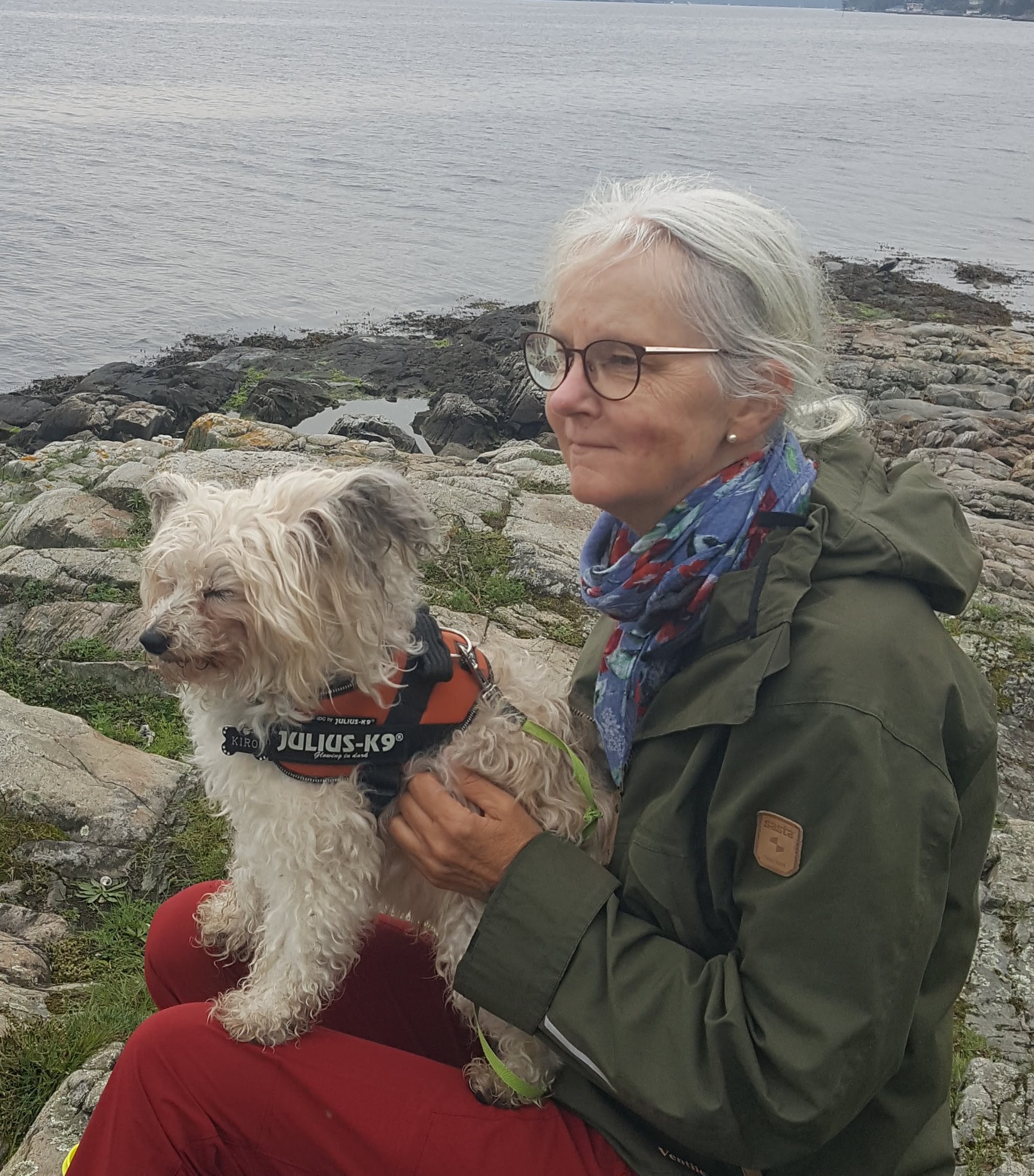 Tusleturer i nærområdet med min gode trofaste venn – hunden Kiro på 15 år.  Å sitte på verandaen på solfylte lune dager og nyte utsikten, med kaffe/te og en god bok. Og så er jeg veldig glad i å være ved sjøen på en vakker strand eller på svaberga, særlig på Sørlandet der jeg kommer fra 😊