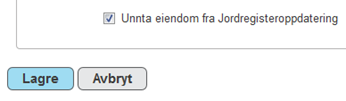 Nederst i endringsskjermbildet for grunneiendom er det et avkryssingsfelt der man kan markere at eiendommen skal unntas fra oppdatering av arealtall fra jordregister: