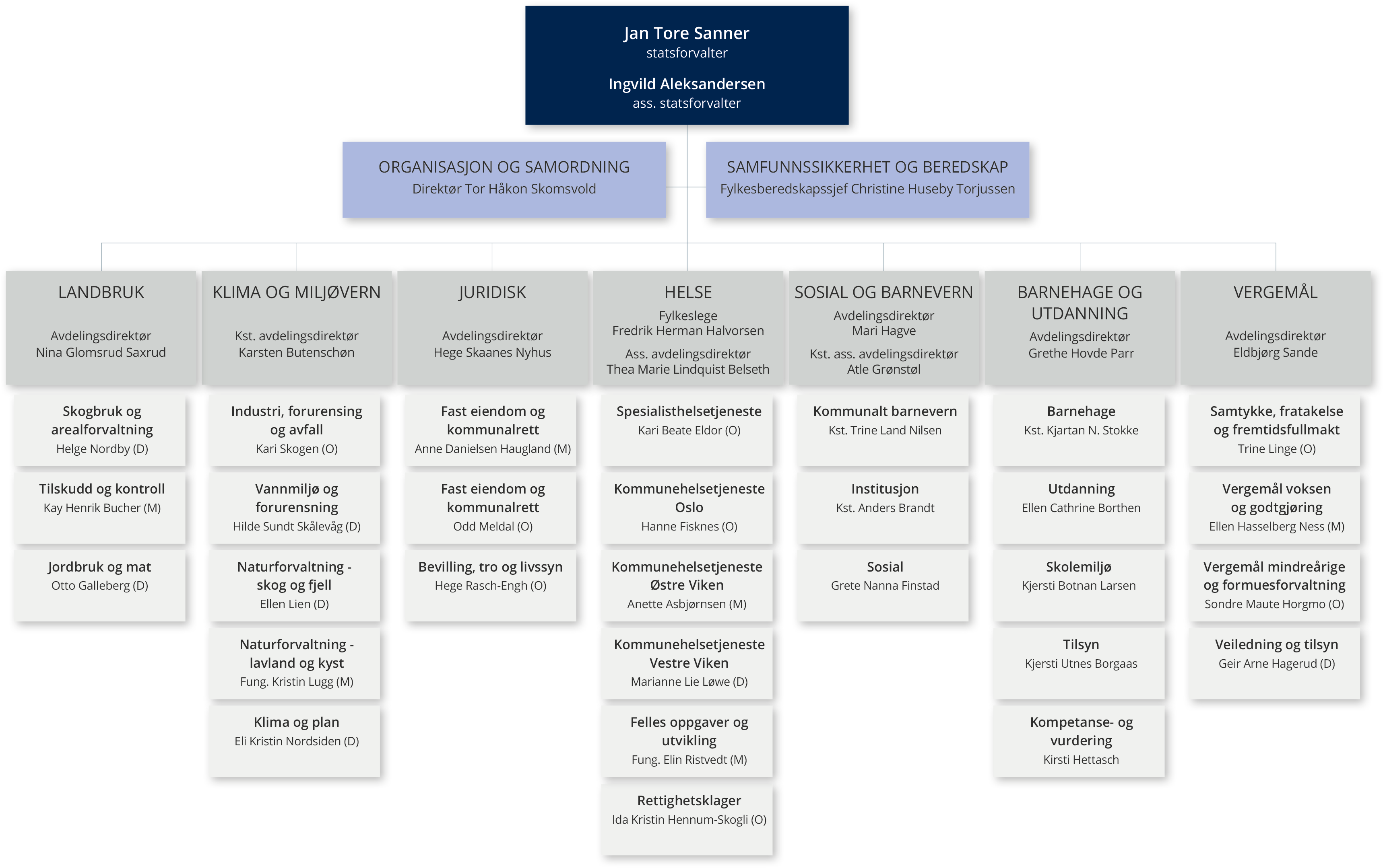Hos Statsforvalteren i Østfold, Buskerud, Oslo og Akershus er over 500 medarbeidere organisert i to staber og syv fagavdelinger.