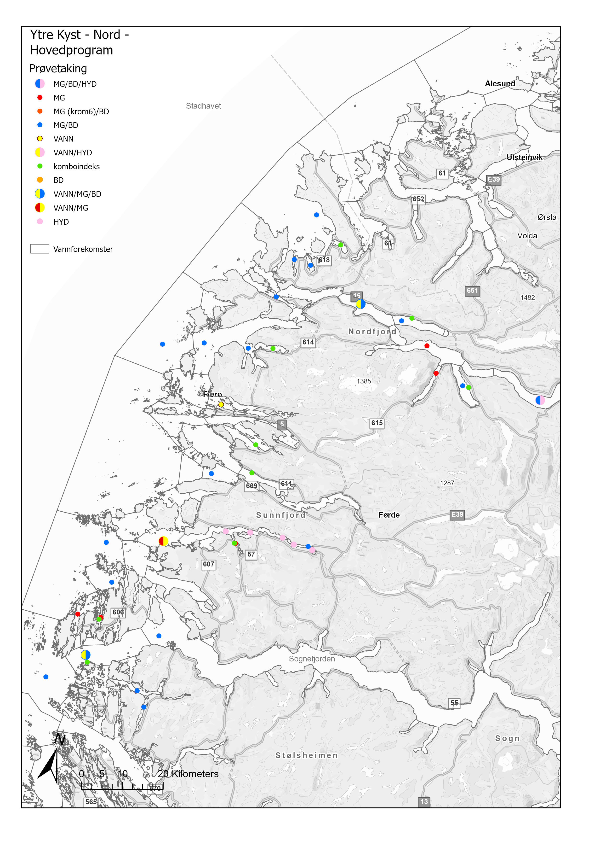 Overvakingsprogramma som no er starta opp er delt inn i to geografiske områder som vi kallar Ytre Kyst Nord, og Ytre Kyst Sør. Sjå kart som er lagt i høgremargen.