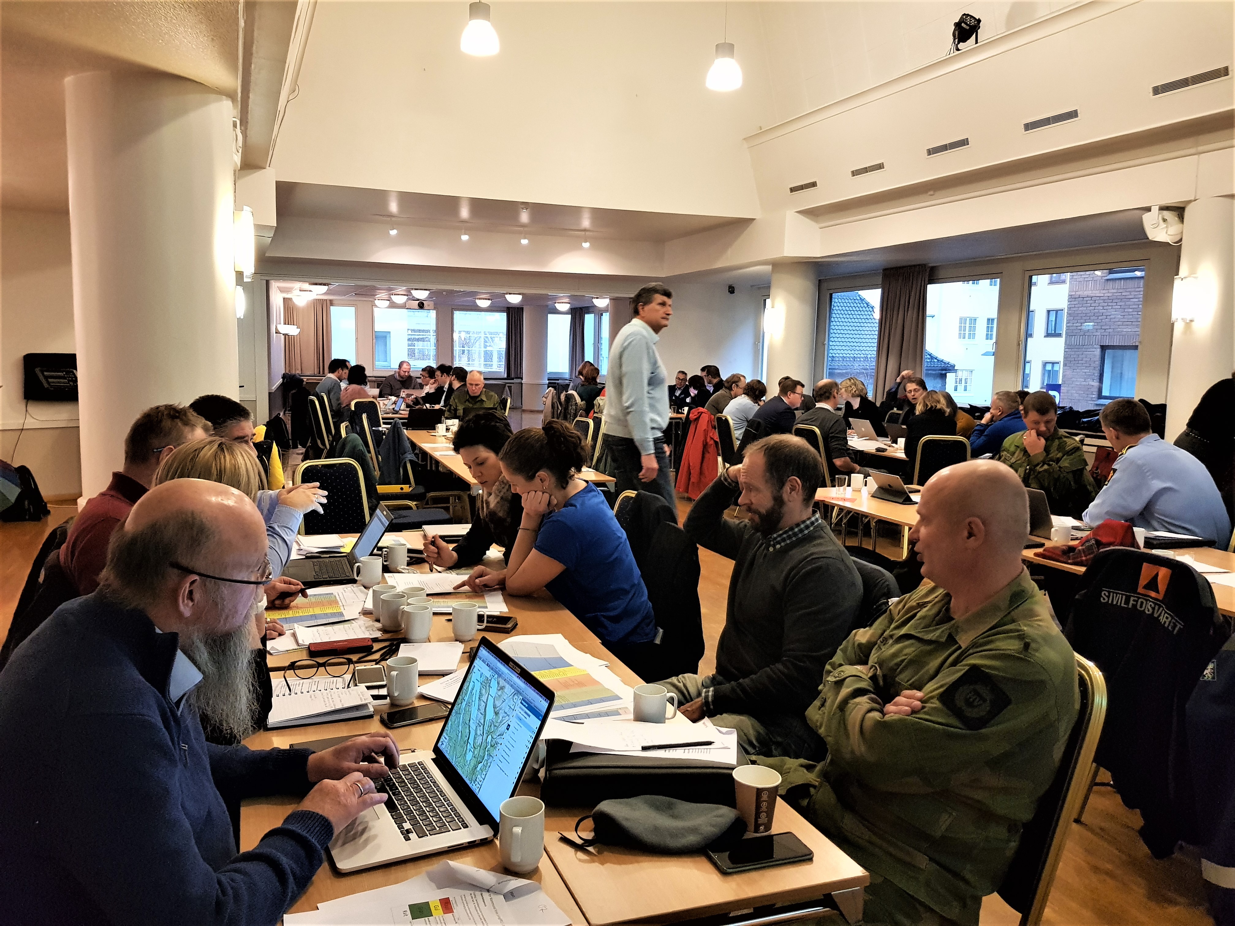 Vi inviterte til beredskapsøving denne veka, for å hjelpe til med å førebu og «trimme» kriseleiinga i samanslåingskommunane før dei vert formelt etablert frå nyttår. På tysdag øvde kommunane Ullensvang, Bjørnafjorden, Alver, Øygarden og Voss i Bergen. Dagen etter møttest kommunane Kinn, Stad, Sunnfjord og Sogndal på Skei. Representantar frå Vest politidistrikt, HV 09/11, Sivilforsvaret, Røde kors, Helse Førde og Helse Bergen deltok og hjelpte oss med gjennomføringa.